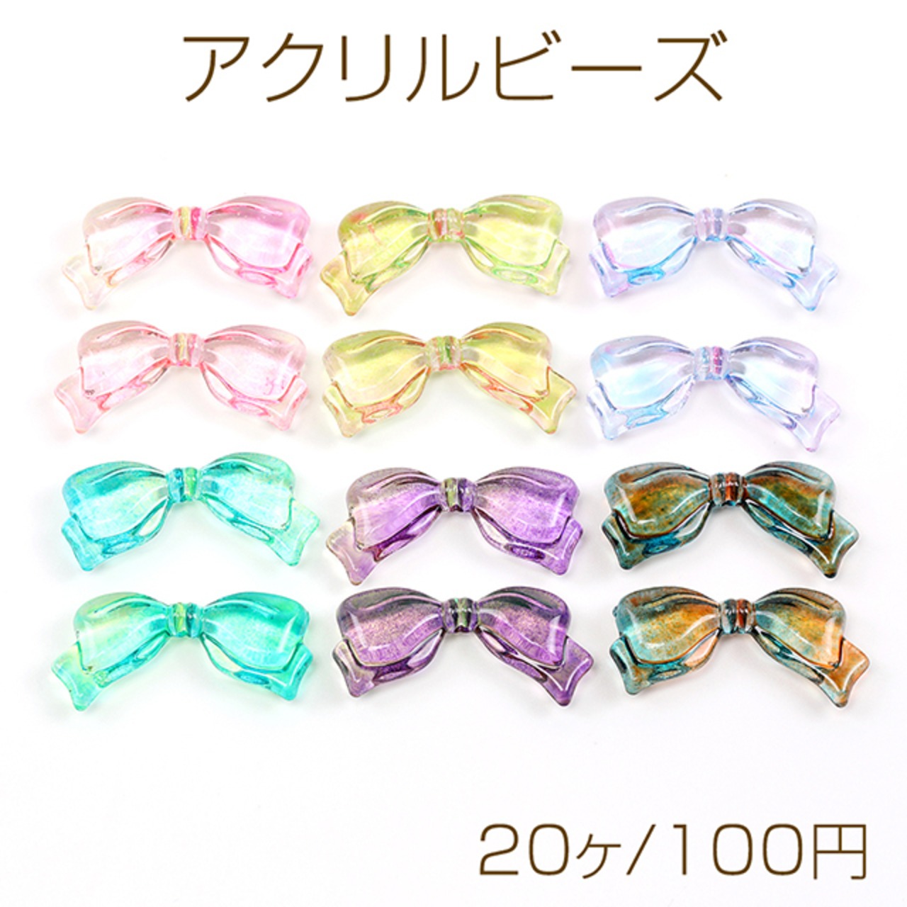 A5375 アクリルビーズ リボンビーズ 通し穴あり グラデーションカラー 約14×29mm(20ヶ)