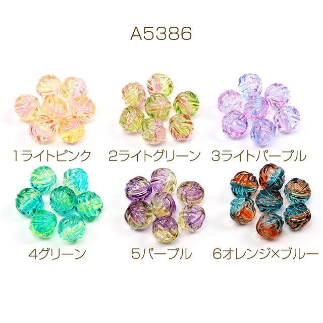 A5386 アクリルビーズ 編み込み風 丸玉ビーズ 通し穴あり グラデーションカラー 約11mm(20ヶ) | Beads&parts BASE2号店