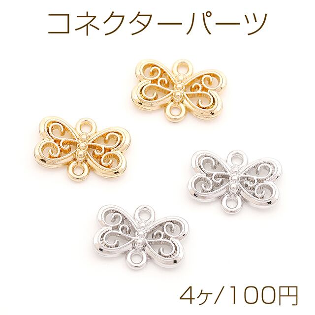 M13543 コネクターパーツ 蝶モチーフ バタフライコネクターチャーム つなぎパーツ 上下2カン付き 約8×12mm(4ヶ) | Beads&parts BASE2号店