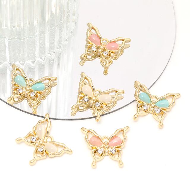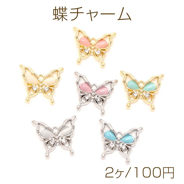 M13565 蝶チャーム フレームガラスチャーム ガラスストーンチャーム 1カン付き オーロラカラー 約19×21mm(2ヶ) | Beads&parts BASE2号店