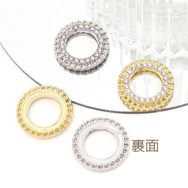 M13593 サークルチャーム フープチャーム メタルリングチャーム ガラスストーンチャーム ラインストーン付き 約18mm(2ヶ) | Beads&parts BASE2号店