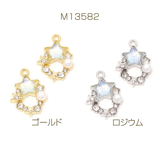 M13582 星チャーム 樹脂チャーム メタルチャーム オーロラカラー パールとラインストーン付き 1カン付き 約15×21mm(2ヶ) | Beads&parts BASE2号店