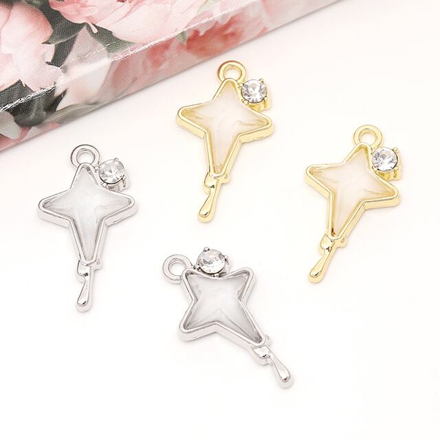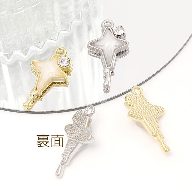 M13583 フラッシュスターチャーム 星樹脂チャーム メタルチャーム ラインストーン付き 1カン付き 約12×22mm(2ヶ) | Beads&parts BASE2号店