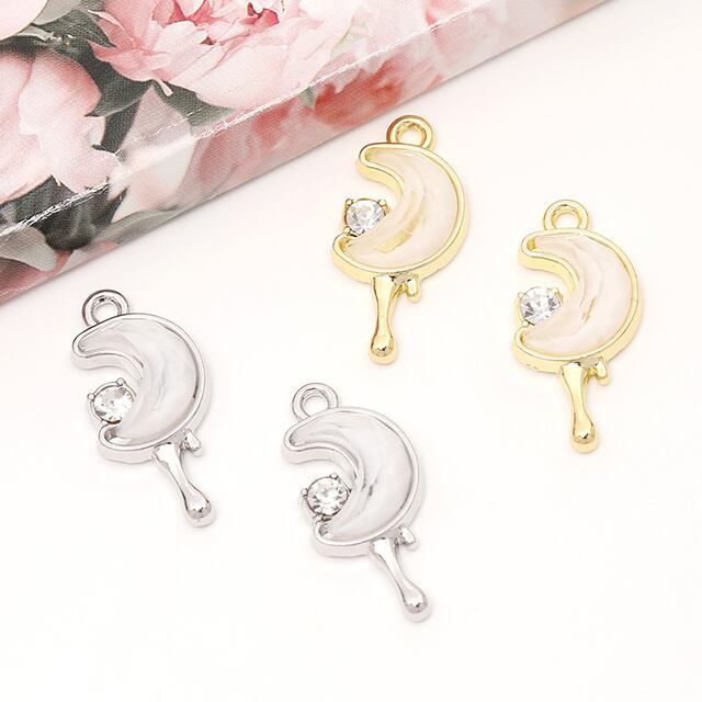 M13584 ムーンチャーム 月型樹脂チャーム メタルチャーム ラインストーン付き 1カン付き 約10×21mm(2ヶ) | Beads&parts BASE2号店