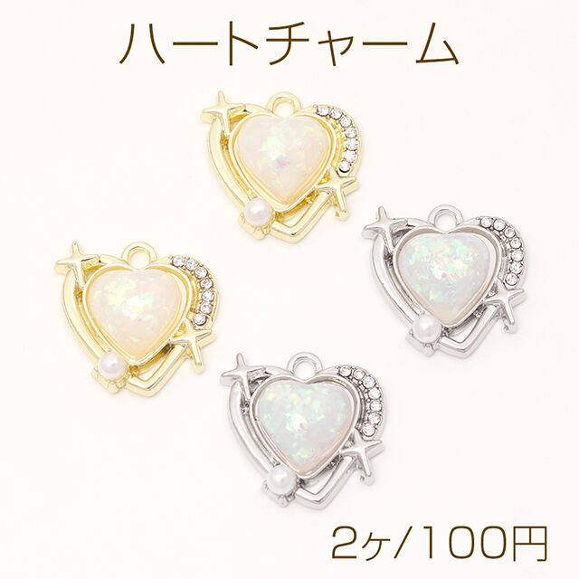 M13590 ハートチャーム 樹脂チャーム メタルチャーム オーロラカラー パールとラインストーン付き 1カン付き 約16×17mm(2ヶ) | Beads&parts BASE2号店