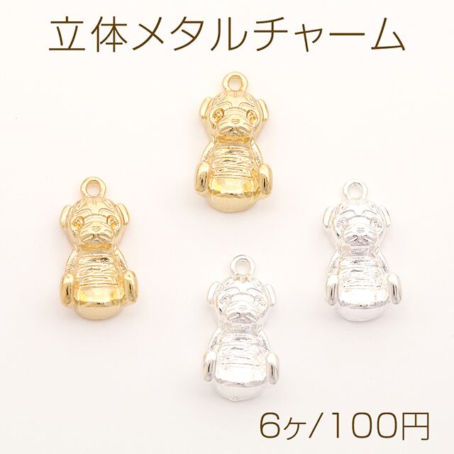 M13598 立体メタルチャーム くまチャーム クマチャーム ベアチャーム くまメタルチャーム 1カン付き 約10×18mm(6ヶ) | Beads&parts BASE2号店