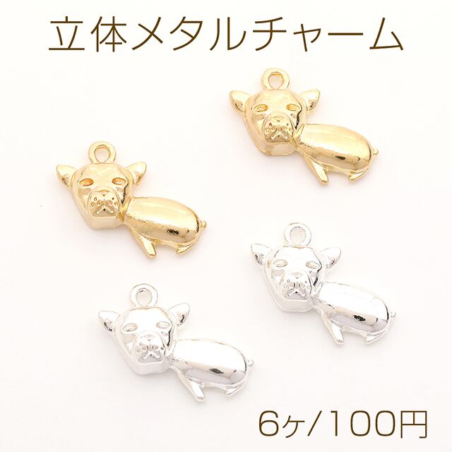 M13604 立体メタルチャーム 犬チャーム ドッグチャーム ドッグメタルチャーム 犬メタルチャーム 1カン付き 約9×17mm(6ヶ) | Beads&parts BASE2号店