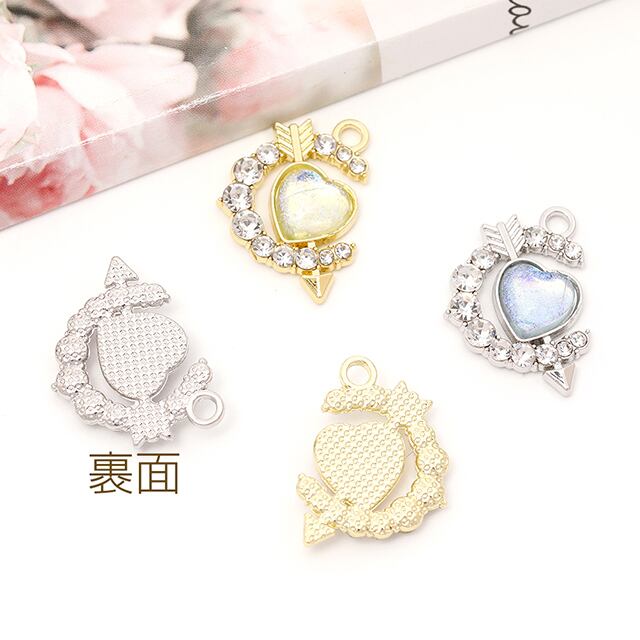M13674 ハートチャーム キューピットの矢とハート 樹脂チャーム ラインストーン付き 1カン付き オーロラカラー 16×19mm(2ヶ) | Beads&parts BASE2号店