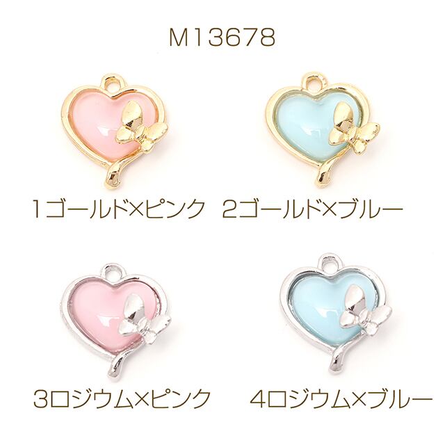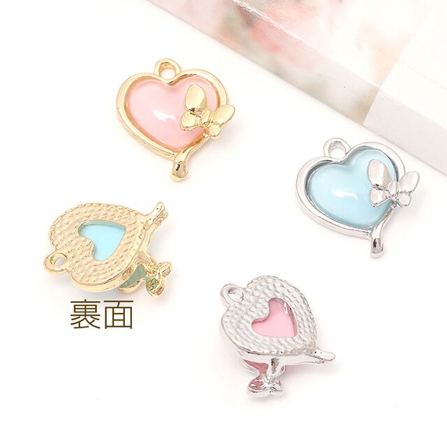 M13678 ハートチャーム 樹脂チャーム メタルチャーム ハートモチーフ 蝶付き 1カン付き オーロラカラー 約14×16mm(2ヶ) | Beads&parts BASE2号店
