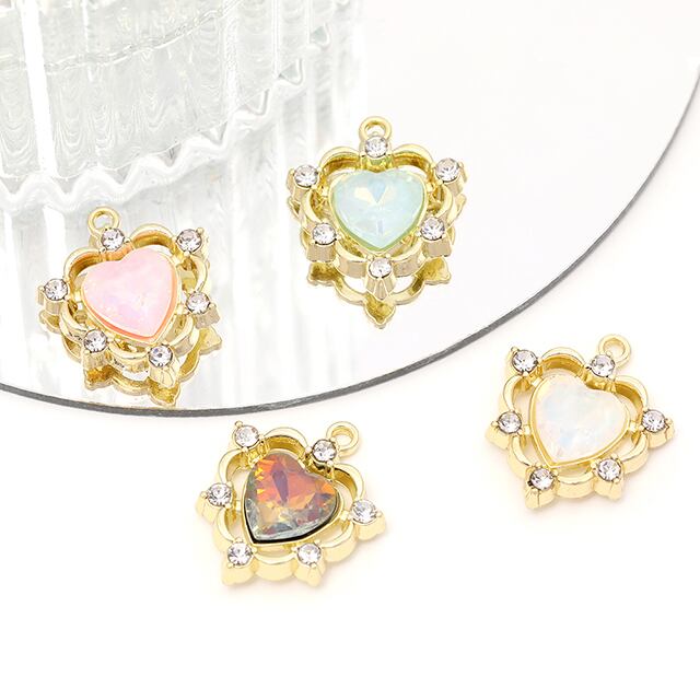 M13662 ハートチャーム フレームガラスチャーム ガラスストーンチャーム 1カン付き オーロラカラー 約16×19mm(2ヶ) | Beads&parts BASE2号店