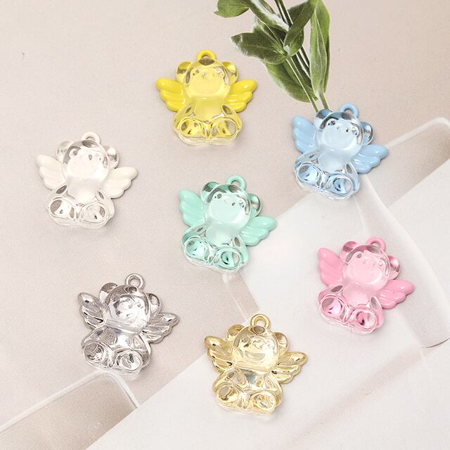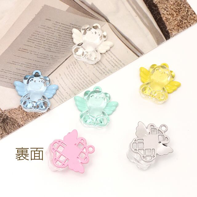 M13693 くまチャーム 樹脂チャーム メタルチャーム 天使の羽根 エンジェルつばさ くまモチーフ 1カン付き 約19×20mm(2ヶ) | Beads&parts BASE2号店