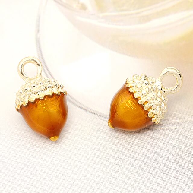 M13715 ミニチュアフードチャーム メタル製 食品サンプルチャーム フェイクフードチャーム どんぐり 1カン付き 約9×14mm(2ヶ) | Beads&parts BASE2号店