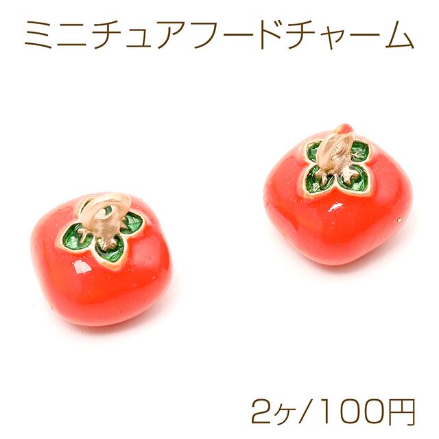 M13735 ミニチュアフードチャーム メタル製 食品サンプルチャーム フェイクフードチャーム 柿 1カン付き 約9×11mm(2ヶ) | Beads&parts BASE2号店