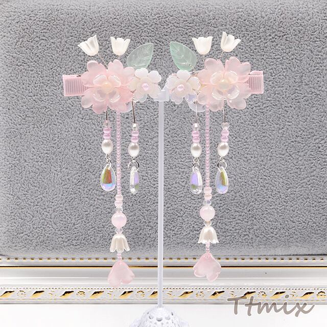 TH1414 フラワーへアピン キッズへアピン フラワーモチーフヘアクリップ ヘアアクセサリー 髪飾り フラワー 花 タッセル(1ヶ) | Beads&parts BASE2号店