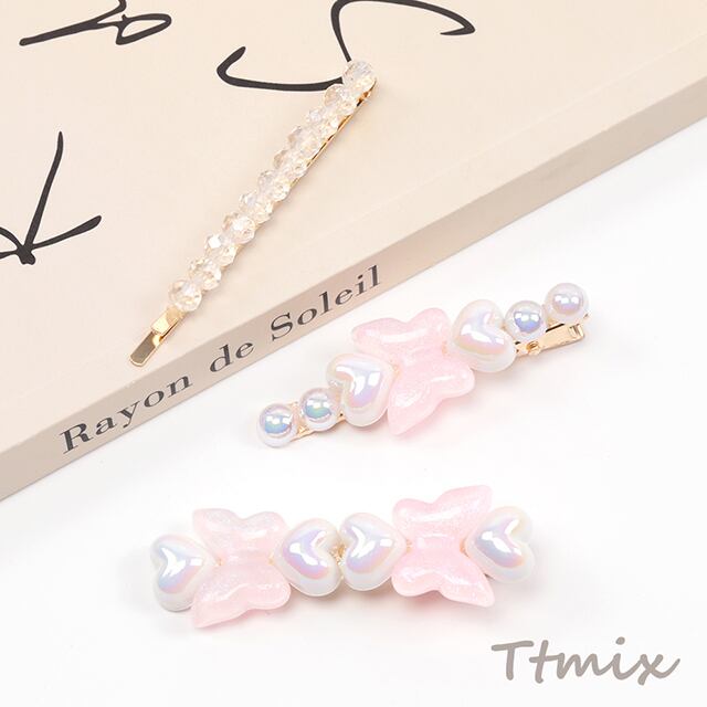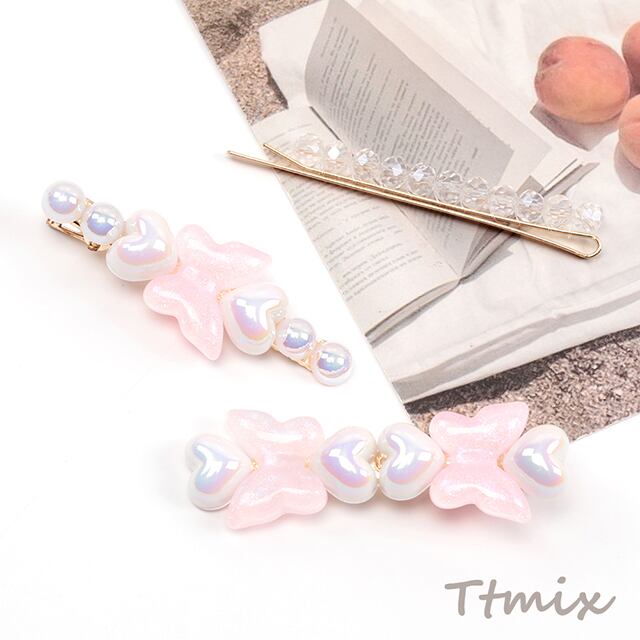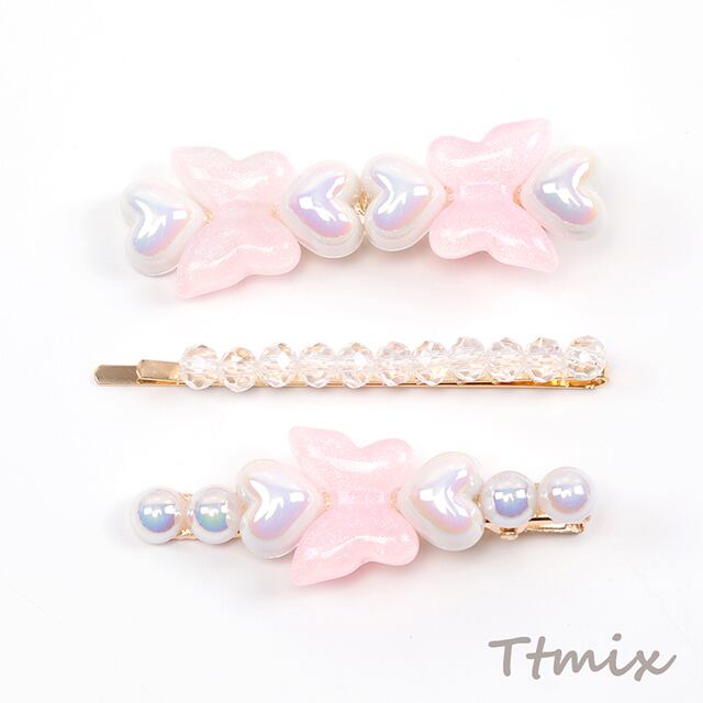 TH1420 ヘアクリップ3点セット へアピン 蝶モチーフヘアクリップ 前髪クリップ 髪留め ピンクカラー | Beads&parts BASE2号店