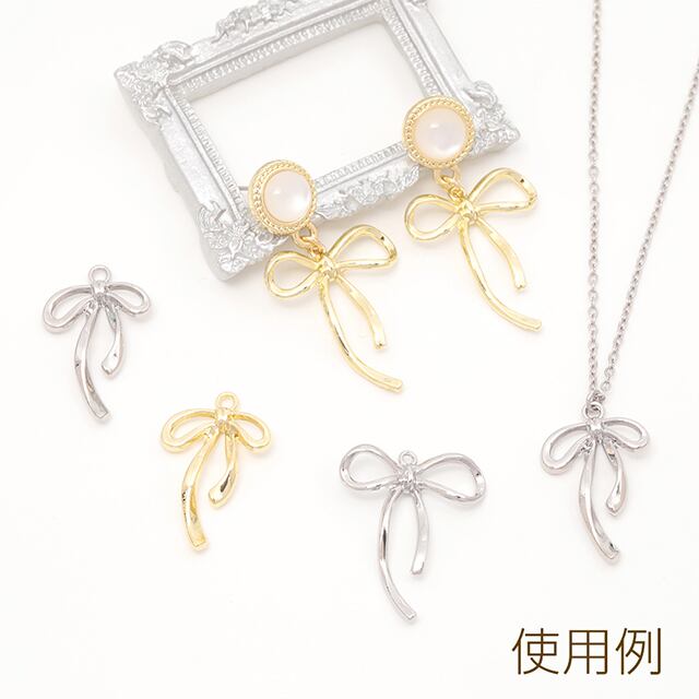 M13771 立体メタルチャーム メタルリボンチャーム メタルりぼんチャーム 立体リボンチャーム 1カン付き 約15×25mm(4ヶ) | Beads&parts BASE2号店