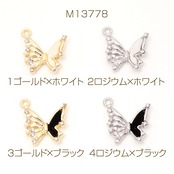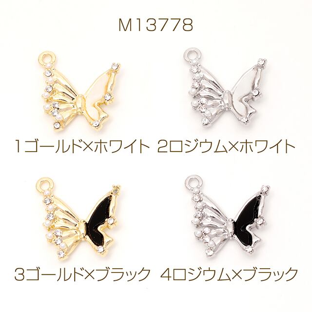 M13778 蝶チャーム バタフライチャーム 樹脂チャーム メタルチャーム パールとラインストーン付き 1カン付き 約19×20mm(2ヶ) | Beads&parts BASE2号店
