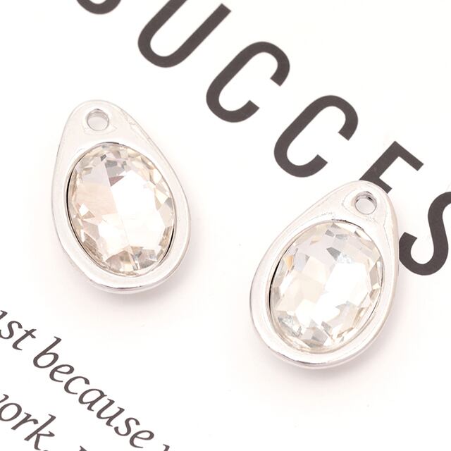 M13799 ドロップチャーム メタルチャーム しずく型 雫型 ラインストーン付き 1穴あり ロジウム 約13×21mm(2ヶ) | Beads&parts BASE2号店