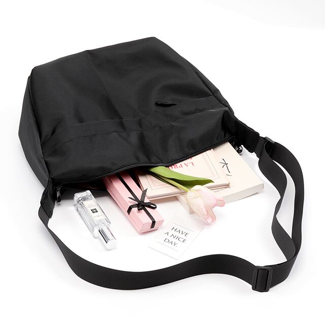 KW514 ショルダーバッグ 斜め掛けバッグ 多機能ポケット付き 丈夫 軽量 撥水ナイロン生地 ブラック 約12×25×38cm