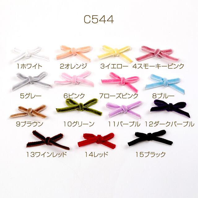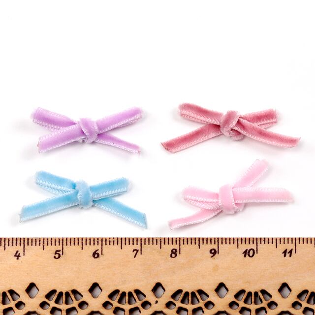C544 ミニリボンパーツ 細い ベロア ベルベットリボン 結びリボン 貼付け デコパーツ ヘアゴム ヘアピン飾り付けリボン (20ヶ) | Beads&parts BASE2号店
