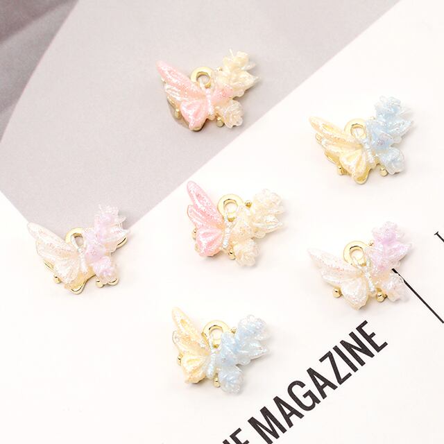 M13935 蝶チャーム ツートンカラー 蝶モチーフチャーム カン付き 約10×13mm (2ヶ) | Beads&parts BASE2号店