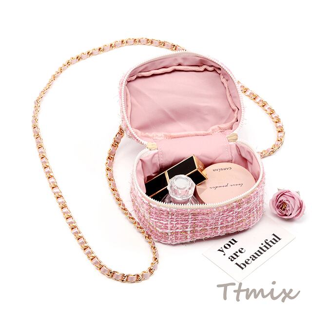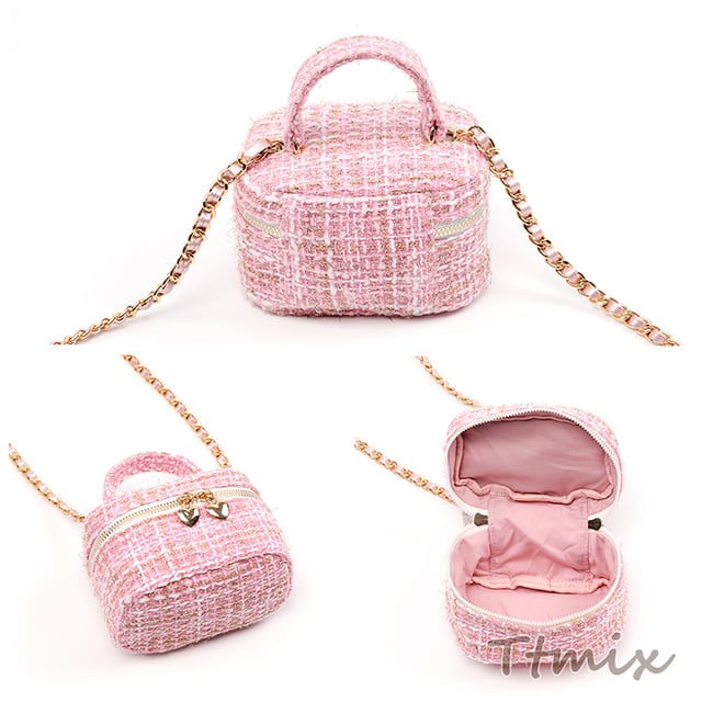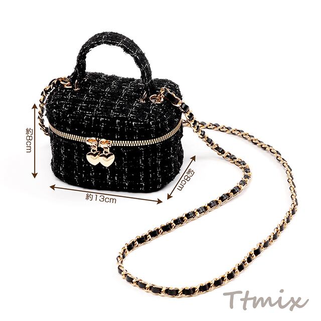 KW569 ツイードバニティバッグ ツイード素材 チェーンショルダーバッグ 斜め掛けバニティバッグ ミニバッグ 8×8×13cm (1個)