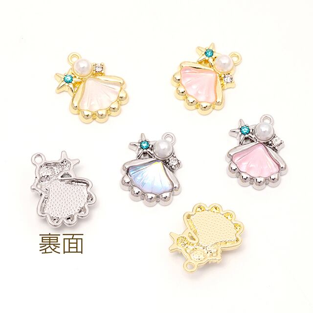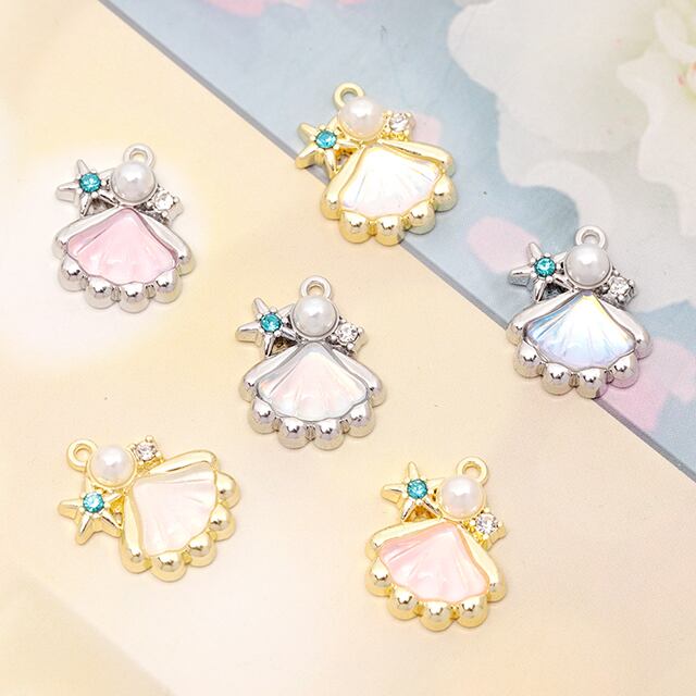 M13960 貝殻チャーム ガラス貝がらチャーム 立体貝がらチャーム マリンチャーム パール付き 1カン付き 約14×17mm (2ヶ) | Beads&parts BASE2号店