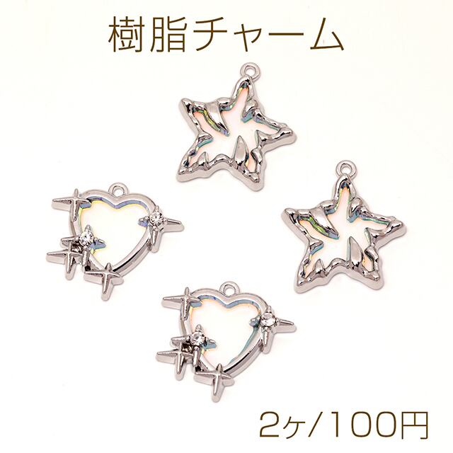 M13968 ハートチャーム スターチャーム 立体ハートチャーム 立体星チャーム 1カン付き 約23×24mm (2ヶ) | Beads&parts BASE2号店