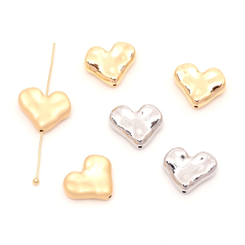 M14057 メタルビーズ 立体ハートモチーフ ハート型ビーズ 合金製 3色 縦穴 約13×16mm(4ケ) | Beads&parts BASE2号店
