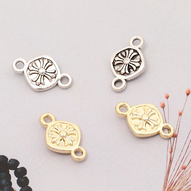 M14069 メタルコネクターチャーム ジョイントパーツ 接続金具 連結パーツ 上下2カン付き ラウンド型 2種類 約8×13mm (6ヶ)