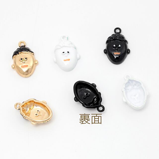 M14073 メタルチャーム エポ塗装加工 顔モチーフ ユニークな顔チャーム 男の子チャーム 全3色 1カン付き 約11×17mm (4ヶ) | Beads&parts BASE2号店