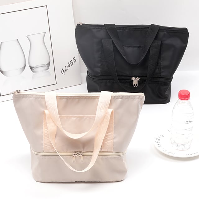 KW588 二段保温バッグ クーラーバッグ 上下2段保冷バッグ お出かけ便利 約縦25×横下部25(横上部35)×マチ幅15cm (1個)