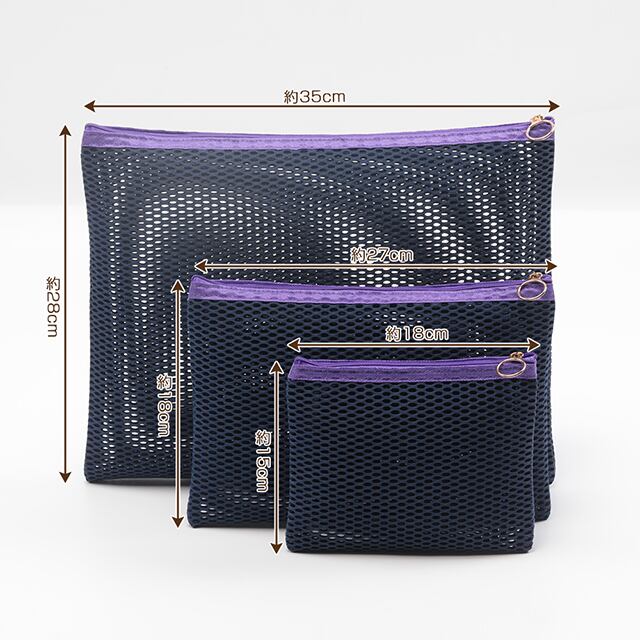 KW592 メッシュポーチ フラットメッシュポーチ マルチポーチ 小物入れ カラーファスナー付き 約縦28×横35cm (1個)