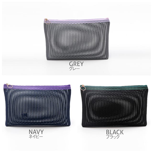 KW593 メッシュポーチ フラットメッシュポーチ マルチポーチ 小物入れ カラーファスナー付き 約縦18×横27cm (1個)