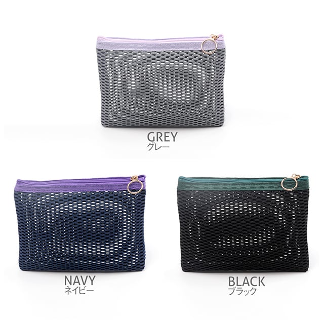 KW594 メッシュポーチ マルチポーチ 収納ケース 小物入れ 小銭 鍵 くすり入れ カラーファスナー付き 約縦15×横18cm (1個)