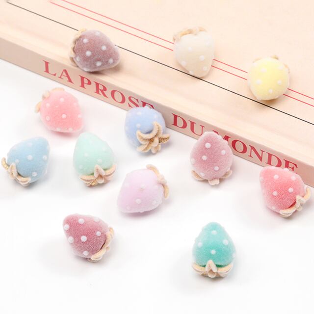 A785 いちごチャーム フロッキー調 苺 イチゴチャーム ストロベリーチャーム 1カン付き 全12色 約12×16mm (2ヶ) | Beads&parts BASE2号店