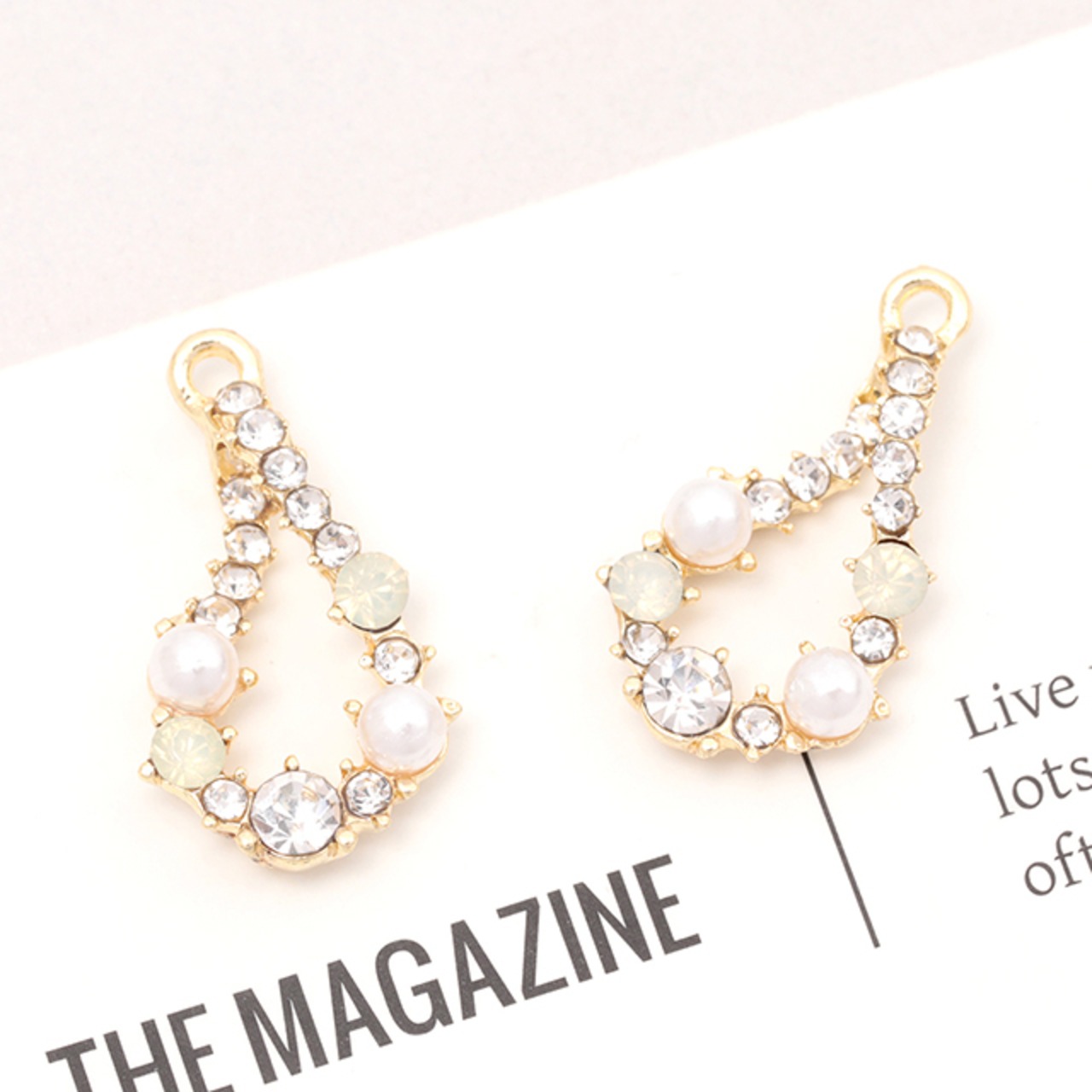 M14207 ガラスストーンチャーム しずく型 フレームチャーム パールとガラスストーン装飾 カン付き 約14×25mm (2ヶ)