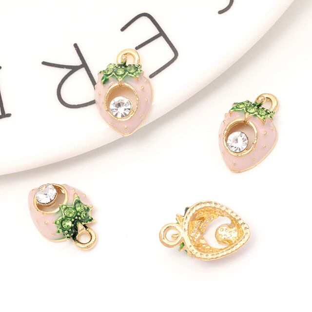 M14209 いちごチャーム ガラスストーン付きイチゴチャーム 苺チャーム ストロベリーチャーム カン付き 約10×15mm (2ヶ) | Beads&parts BASE2号店