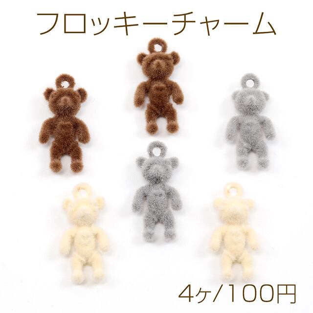 M14255 フロッキーチャーム 熊 くま クマ型チャーム テディベアチャーム アニマルチャーム カン付き 約9×19mm (4ヶ) | Beads&parts BASE2号店