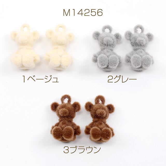 M14256 フロッキーチャーム 熊 くま クマ型チャーム テディベアチャーム アニマルチャーム カン付き 約9×15mm (4ヶ) | Beads&parts BASE2号店