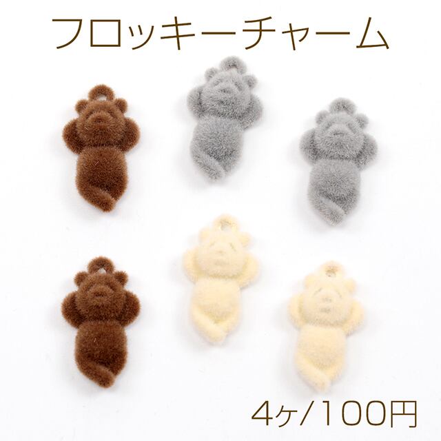 M14258 フロッキーチャーム 熊 くま クマ型チャーム テディベアチャーム アニマルチャーム カン付き 約10×18mm (4ヶ) | Beads&parts BASE2号店