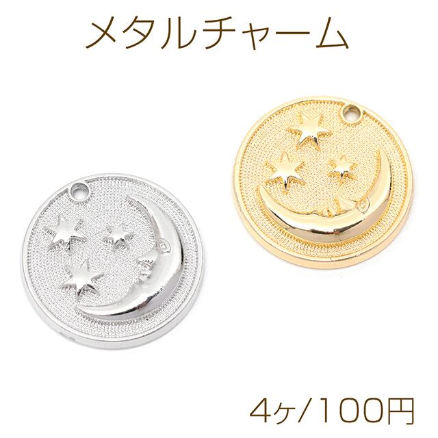 M10511 メタルチャーム 月と星型 ラウンド 合金製 約24mm(4ヶ) | Beads&parts BASE2号店