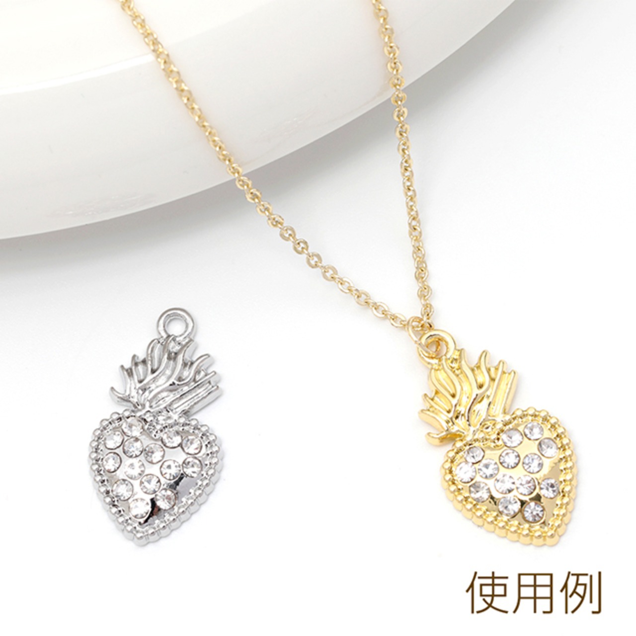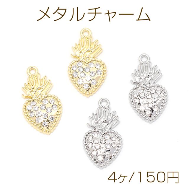 M10589 メタルチャーム ハート 石付き 合金製 約12×22mm(4ヶ) | Beads&parts BASE2号店