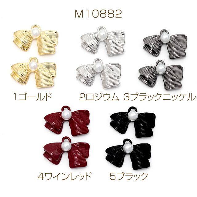 M10882 メタルチャーム リボン 透かしチャーム パール付き 合金製 約12×18mm(2ヶ) | Beads&parts BASE2号店