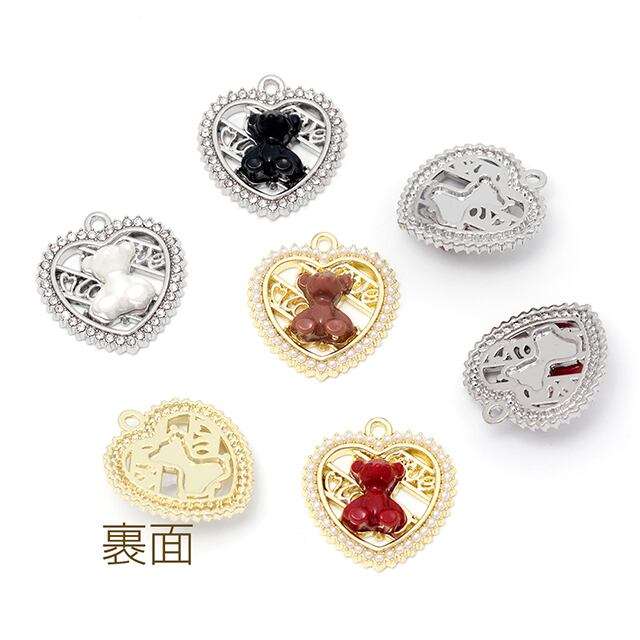 M10892 メタルチャーム くま 熊 ハート型 石付き 合金製 約20×21mm(2ヶ) | Beads&parts BASE2号店