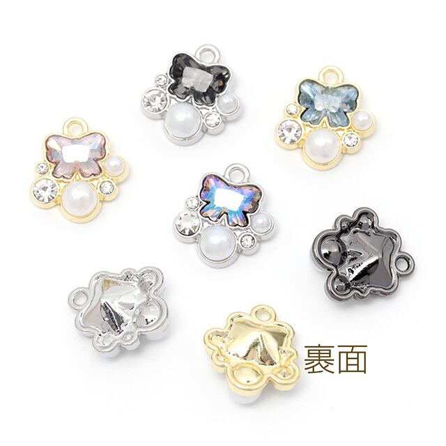 M1956 メタルチャーム 蝶チャーム ガラスストーン付き バタフライチャーム 約14×15mm(2ヶ) | Beads&parts BASE2号店