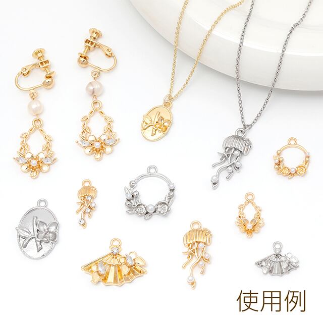 M2994 メタルチャーム クラゲ ガラスストーン付き パール付き 合金製 約7×18mm(6ヶ) | Beads&parts BASE2号店