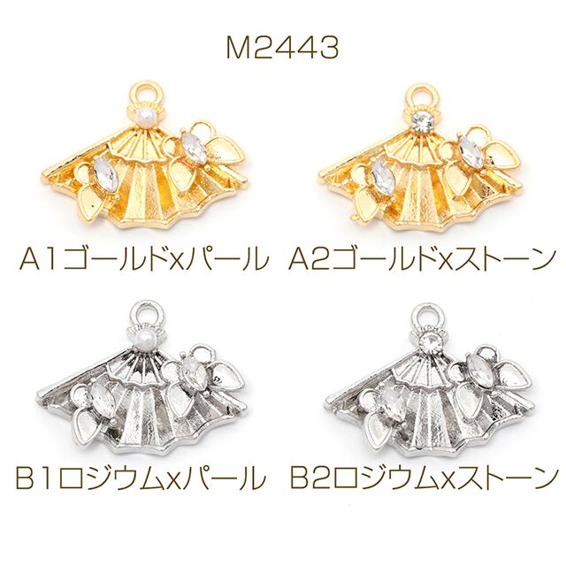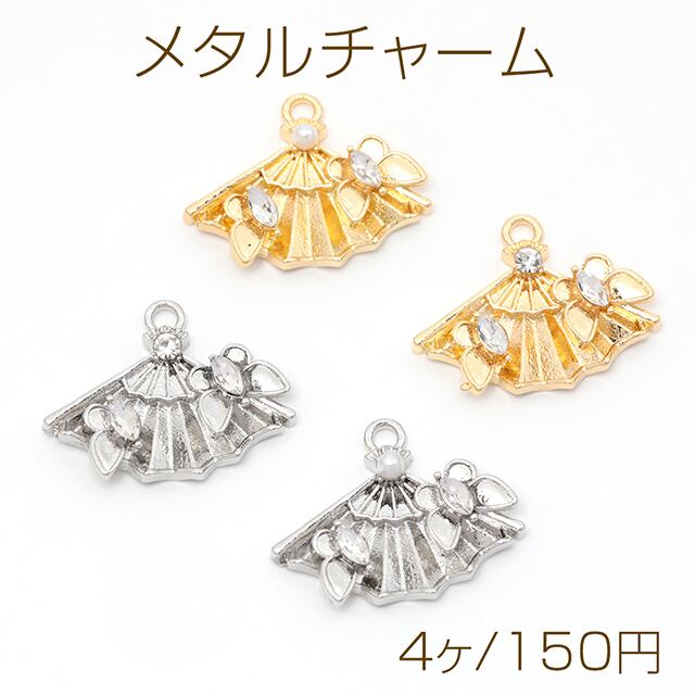 M2443 メタルチャーム 扇形 ガラスストーン付き パール付き 合金製 約17×22mm(4ヶ) | Beads&parts BASE2号店
