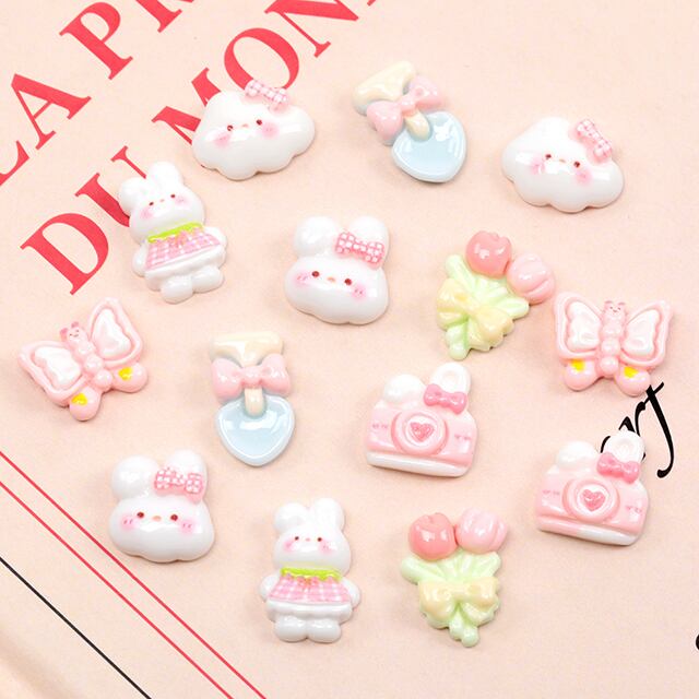 A1419 アクリル貼り付けパーツ ウサギ 蝶々 チューリップ カメラ キッズ※種類ミックス(10ヶ) | Beads&parts BASE2号店