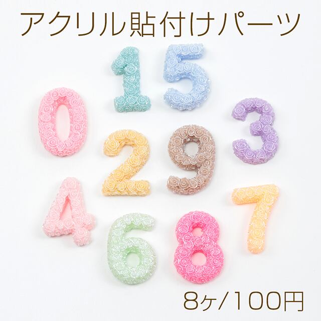 A060 アクリル貼り付けパーツ 数字ミックス ナンバー カラフル パステルカラー ※ランダムのため指定不可(8ヶ)